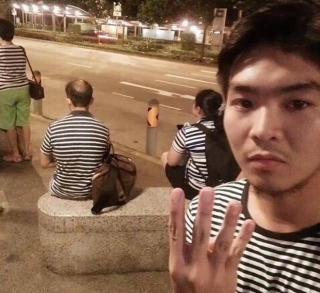 ៥ បុរស ៣ នាក់មានរូបរាងដូចគ្នា និងអាវដូចគ្នា