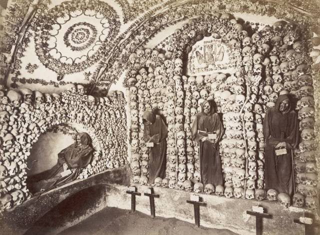 #1 គ្រោងឆ្អឹងនិងលលាដ៍ក្បាលមនុស្ស ត្រូវបានគេដាក់នៅកន្លែងបញ្ចុះសពនៅក្រោមព្រះវិហារ Capuchin នៅទីក្រុងរ៉ូមប្រហែលកំឡុងឆ្នាំ 1900 ។