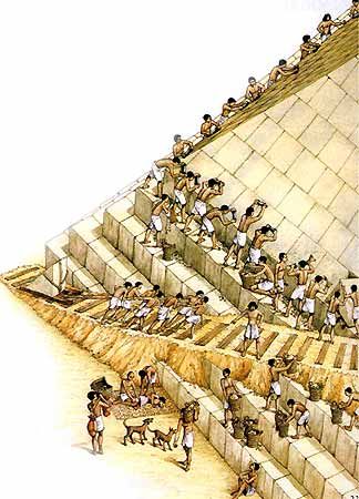៣. ប្រាសាទពីរ៉ាមីត ត្រូវបានគេជឿថាសាងសង់ពីដុំថ្មធំៗ ប្រមាណជាង ២លានដុំ ដែលអាចមានទម្ងន់ប្រហែលពី ២ ទៅ ៥០ តោន។ គេប៉ាន់ស្មានថាប្រហែលជាមានមនុស្សប្រមាណជាង ១០០ ០០០ នាក់ ដែលជាអ្នកសាងសង់ បើទោះជាគេមិនទាន់ដឹងថាតើមនុស្សជំនាន់នោះ ប្រើប្រាស់វិធីសាស្រ្តណាដើម្បីសាងសង់ក៏ដោយ។