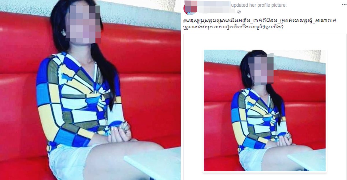 ប្អូនស្រីម្នាក់បង្ហោះសារ ឌឺទៅលើបុរសៗថា "មនុស្សប្រុសដូចស្រោមជើងអញ្ចឹង_ពាក់ពីបីដង_ក្រវាត់ចោលដូរថ្មី_អាណាពាក់ស្រួលលាងវាទុកពាក់ទៀតគឺតចឹងអត់ស្រីៗគ្នាយើង?"។